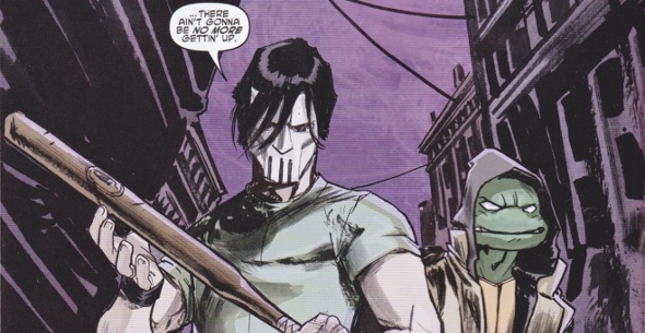 Raphael est venu en secours à un jeune garçon battu par son père. Ce jeune garçon se révèle au final n'être ni plus ni moins que Casey Jones, connu des fans des Tortues pour être un vigilant masqué qui a fait de temps en temps équipe avec nos héros. Toujours équipé de son masque de hockey et de sa batte, il parcours les rues la nuit en quête de justice, et c'est donc ce qu'il va continuer à faire avecRaphael. Les deux hommes ont enfin quelqu'un à qui se confier. On apprend donc entre autre que si Casey ne répliquait pas face à son père, c'est par respect pour sa défunte mère qui lui a demandé d'en prendre soin. Mais ça ne l'empêche pas de se venger sur les criminels de la rue, même si entre son look et la physiologie de Raphael, les honnêtes gens ont plutôt tendance à fuir que rester pour les remercier.