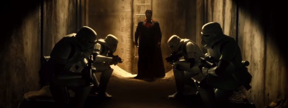 Si vous avez suivi en même temps que nous la longue phase de développement de Batman v Superman, vous vous souvenez peut-être que Zack Snyder s'amusait à mélanger les images de tournage de son film à des éléments typiquement Star Wars, comme des Stormtroopers et autres sabres-laser. Un petit jeu qui avait conduit les décorateurs de The Force Awakens à inclure la Batmobile de Nolan sur la surface du Faucon Millenium.