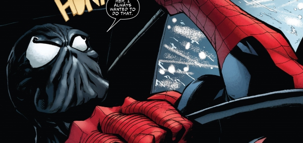 Le décor change plutôt vite dans un récit dynamique qui se laisse la place d'évoquer la relation Peter/Flash, avec un ton de bromance sincère qui fait effet malgré de grosses lourdeurs. Sans finesse, sans subtilité, chaque rebondissement sent bon l'automatisme, la paresse et le désintérêt des scénaristes sur ce vilain prétexte qui, non content de tuer l'iconographie d'habitude efficace des symbiotes, est un repoussoir à charisme de grande intensité. La présence de Black Cat n'aide pas non plus l'arc à se densifier. Chaque personnage est verbeux, de nombreux temps morts peuplent des scènes d'action plutôt figées, jusqu'au climax du dernier numéro qui nous rappelle que pour rendre un truc plus menacant, il faut surtout le rendre plus gros. Mais si, regardez les Power Rangers.