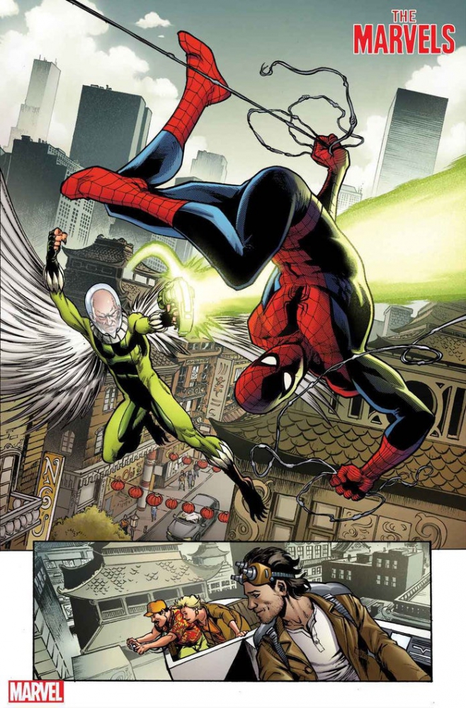 En plus de cela, donc, Alex Ross présentera plusieurs nouveaux personnages, tels que Warbird, Threadneedle, Lady Lotus ou le curieux Kevin Schumer, dont on ne sait pour l'instant pas grande chose - mais qu'on voit apparaître sur la planche dédiée à Spider-Man. Des nouveautés en forme de plus-value pour les lecteurs qui, Kurt Busiek oblige, devrait aller à la rencontre de The Marvels #1 sans trop de difficultés. A retrouver ci-dessous, en patientant pour la sortie de ce premier numéro au courant du mois.
