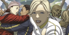 Le premier Billionaire Island imaginait comment les personnalités les plus riches du monde avaient fait bâtir en eaux internationales une île réservée à leurs semblables, sur laquelle aucune loi n'a cours, et qui les protège des catastrophes environnementales auxquelles est soumise le reste de l'humanité. Une journaliste et un homme (Trent) en quête de vengeance s'y aventuraient et découvraient les secrets, horreurs et absurdités que l'île renferme en son sein. Cult of Dogs continuera donc dans cette droite lignée, Mark Russell allant au bout de la satire pour tirer à balles réelles sur les disfonctionnalités du monde moderne, et Pugh servant le propos avec un dessin relativement réaliste, mais qui n'hésite pas à plonger dans des déformations cartoonesques pour accentuer le côté humour noir de l'ensemble. Une première couverture accompagne l'annonce, le premier numéro étant donc attendu chez Ahoy Comics cet automne.