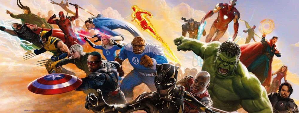 Avengers, X-Men et Quatre Fantastiques réunis sur un visuel officiel de Marvel Studios par Ryan ...
